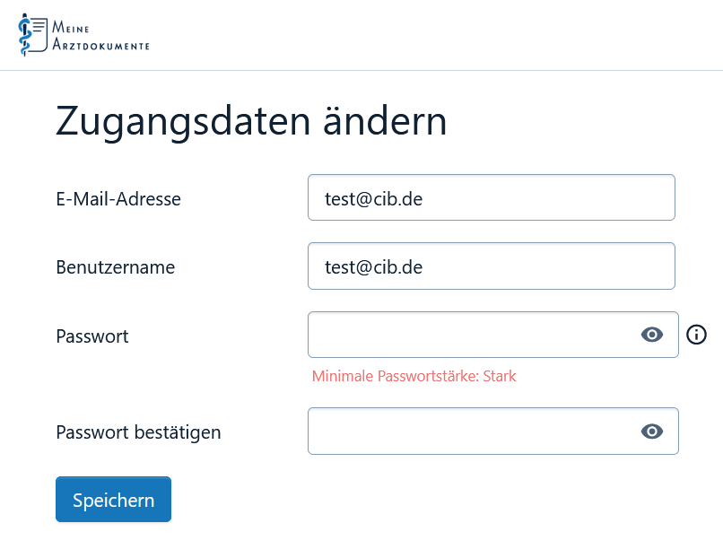Anleitung zum Zurücksetzen Ihres Passworts für Meine Arztdokumente.
